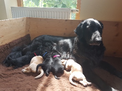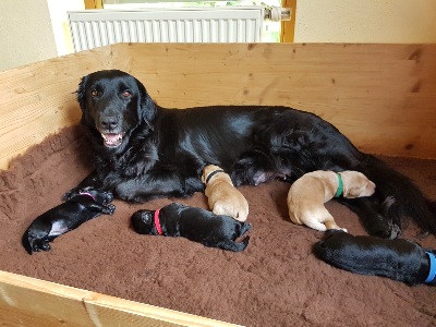 09.05.2018, es ist vollbracht. Elea hat 5 kräftigen wunderschönen Welpen das Leben geschenkt. Es sind 3 Rüden ( 2x blond, 1x schwarz ) und 2 Hündinnen ( schwarz ).Wir freuen uns sehr!!!