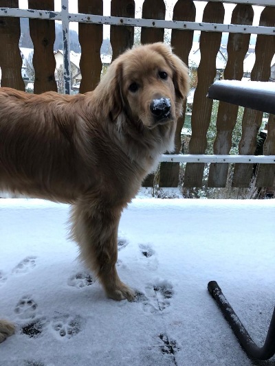 der erste Schnee .....Monty (Merlin genannt ) mit 6 Monaten