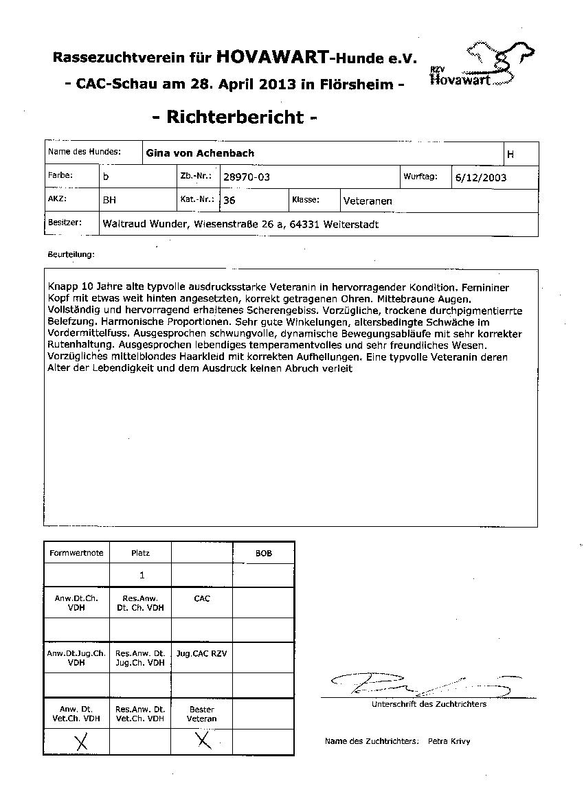08.09.2011, Calina von der Pallaswiese hat an der Herzuntersuchung teilgenommen. Sie ist kerngesund, das Herz ist ohne negativen Befund diagnostiziert. Wir freuen uns sehr über diese schöne Nachricht.