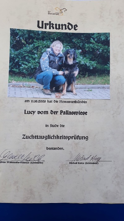 Hera von der Pallaswiese) in Stade die ZTP mit Bravour bestanden! Sie ist jetzt frischgebackene Zuchthündin im Zwinger "von Pfotenhausen"!