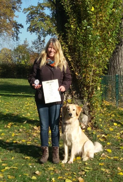 11.12.2011, heute hat Calina von der Pallaswiese die FH1 mit 92 Punkten und Note sehr gut bestanden. Wir gratulieren ganz herzlich zu diesem guten Ergebnis. Weiter so!