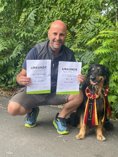 03.08.25, heute haben Imbra von der Pallaswiese und Willi auf der Deutschen Meisterschaft THS RZV im 5000m Lauf und 2000m Lauf den 1. Platz erlaufen.Jippieh Eine ganz tolle Leistung von den beiden, und Imbra ist immerhin schon 10 Jahre alt. Herzlichen Glückwunsch, super gemacht, ihr seid ein tolles Team
