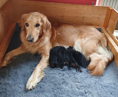 Am 28.01.2021 erblickte unser Q-Wurf das Licht der Welt! 1 Rüde, 3 Hündinnen, alle schwarzmarken.