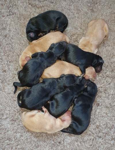 Am 06.05.2022 ist unser R-Wurf über Bennit vom Helmefeld und Hera von der Pallaswiese zur Welt gekommen. 3 Rüden (1b, 2sm) und 7 Hündinnen (3b, 4sm) bevölkern nun die Wurfkiste:-)))